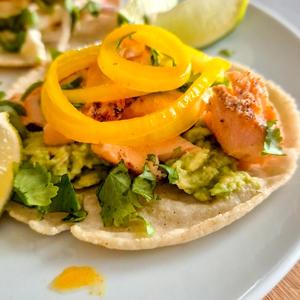 Vor einigen Jahren habe ich auf der kanarischen Insel La Palma in einem Restaurant Fisch Tacos gegessen auf denen diese goldenen Zwiebeln waren und dem ganzen Essen so einen leckeren Frischekick gegeben haben. Seitdem wollte ich die unbedingt mal nachmachen, da sie nicht nur lecker sind, sondern auch optisch total der Hingucker sind. Aber diese Zwiebeln passen nicht nur perfekt zu Fisch-Tacos, sondern auch zu Bowls, Burgern oder Salaten.