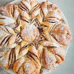- Den Stern im vorgeheizten Ofen etwa 25–30 Minuten backen, bis er goldbraun ist. Nach Belieben mit Puderzucker bestäuben und genießen! Tipp: Am besten schmeckt der Stern frisch aus dem Ofen, wenn er noch leicht warm ist.